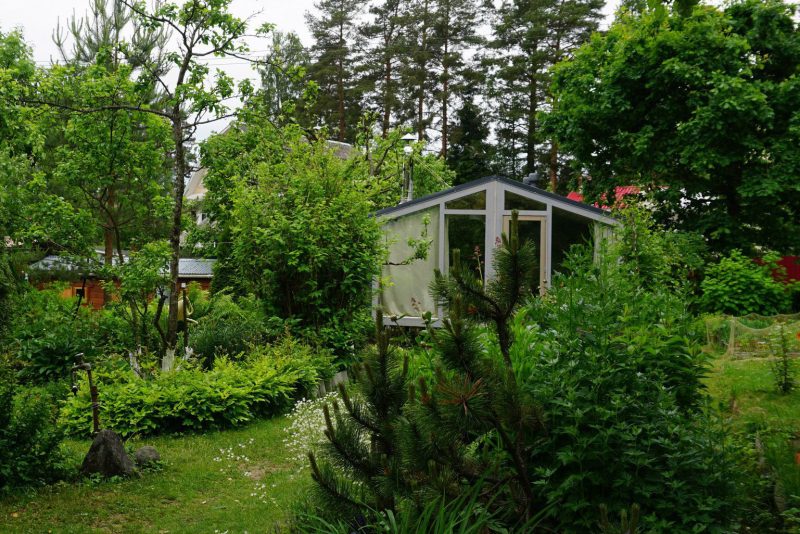 — Поперечные стены модулей (стены/перегородки, расположенные поперек конька): Планкен 20х195мм, сосна, сорт АВ; покраска: Аквалазурь EUROTEX, цвет: Серый графит;